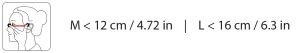 Measure the distance (in cm/in) as shown in the image and compare the measured distance with the size chart.